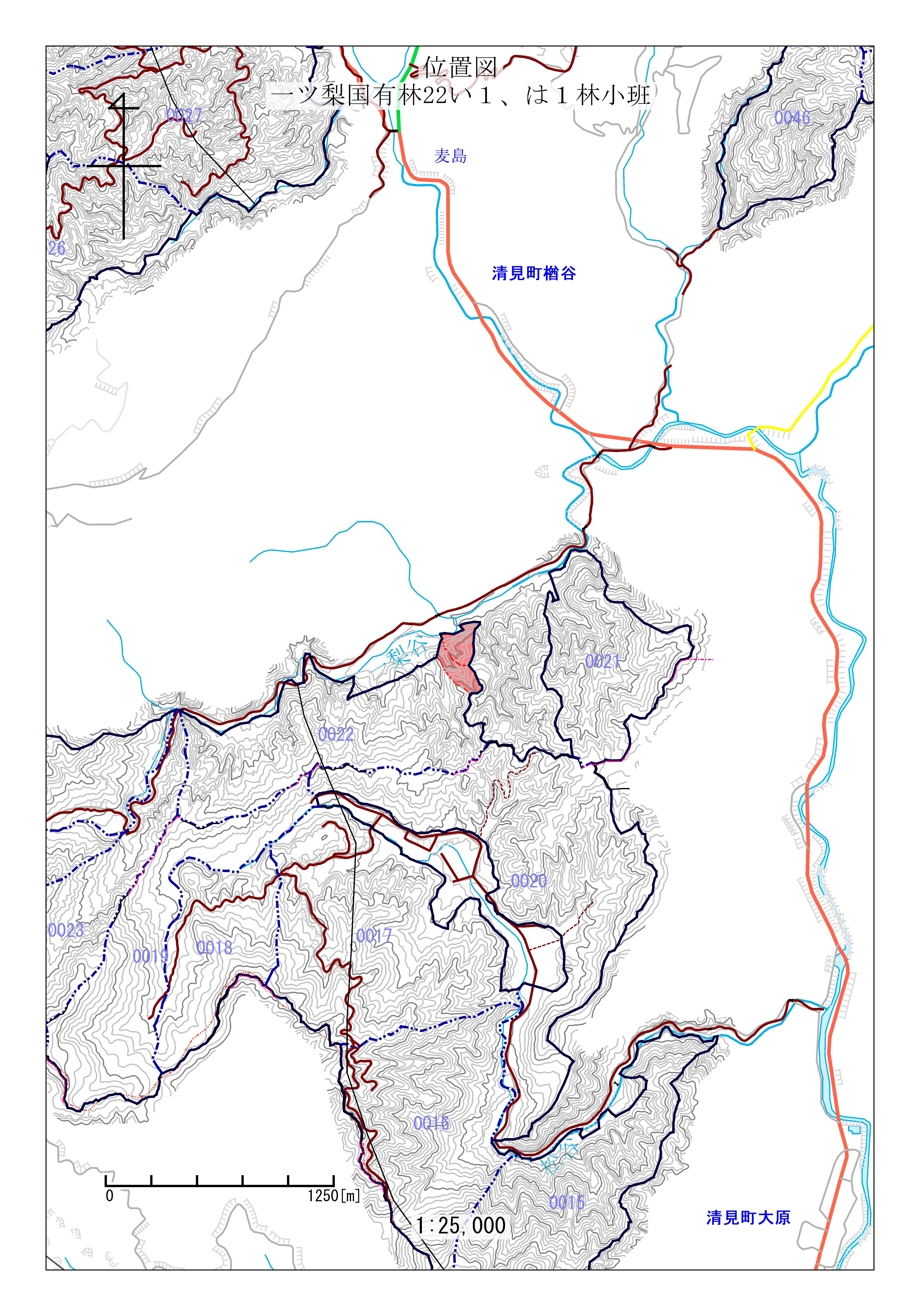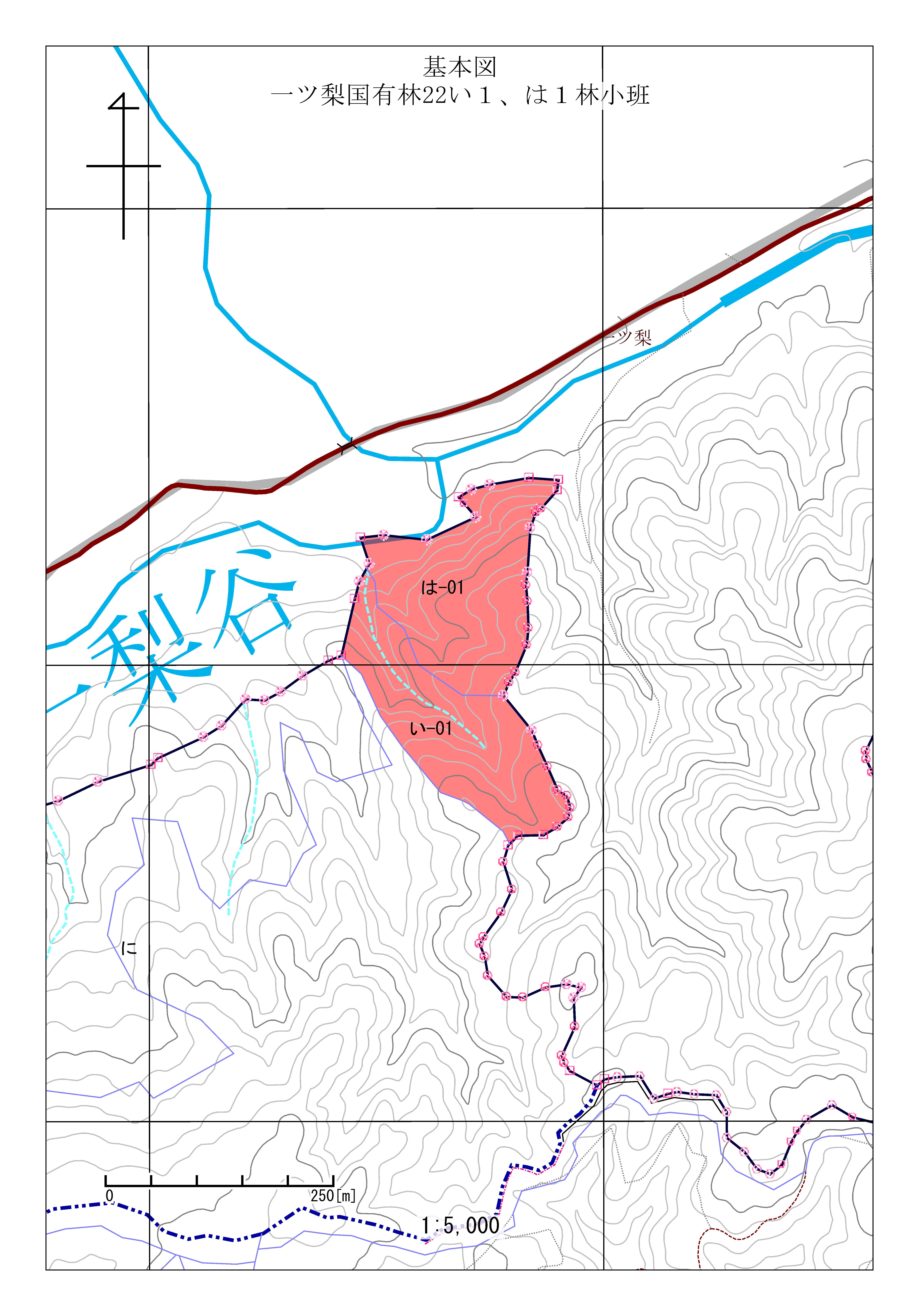 一ツ梨国有林22い1、は1林小班 初回公売:令和3年度