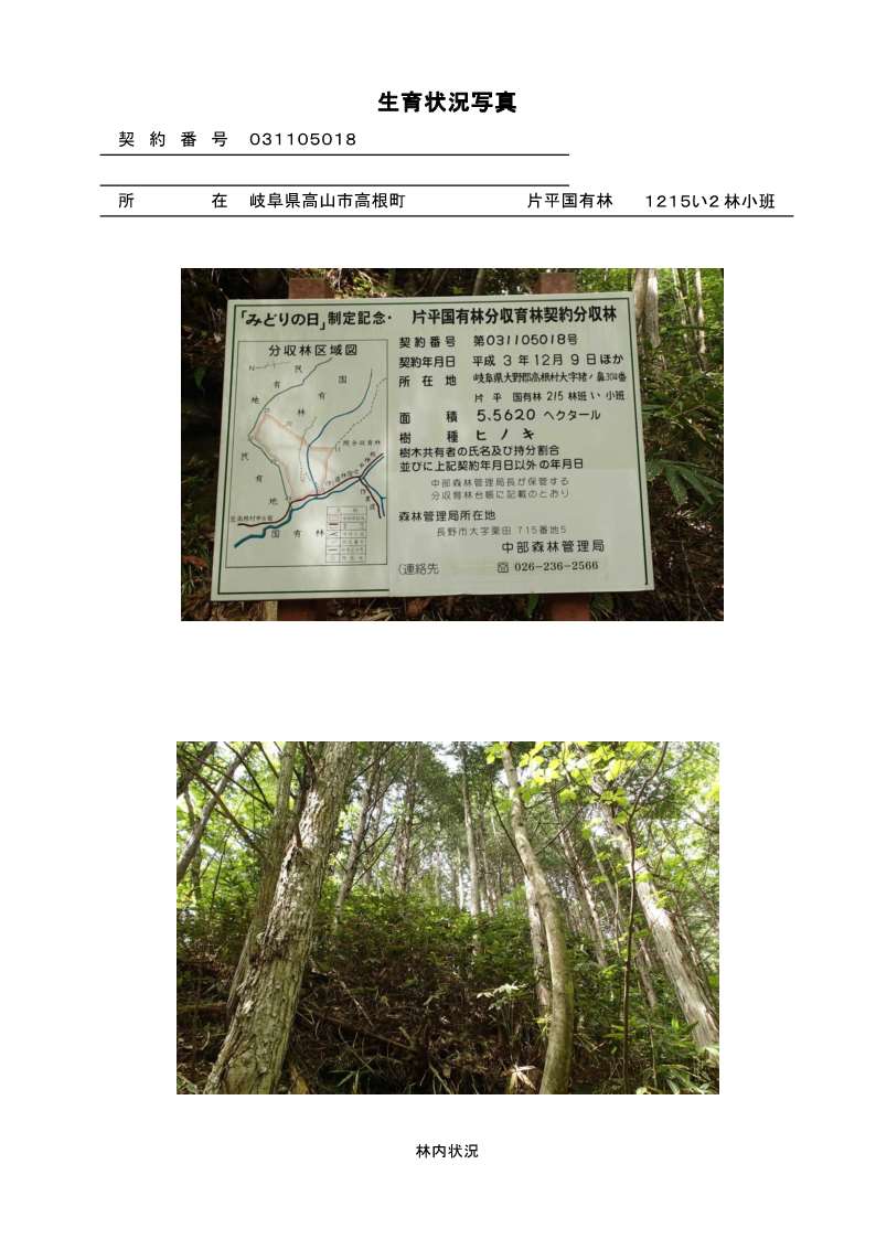 片平国有林1215い2林小班 初回公売:令和2年度