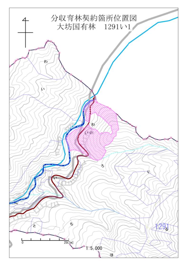 大坊国有林1291い1林小班 初回公売:令和2年度