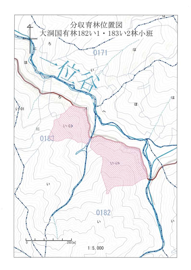大洞国有林182い1、183い2林小班 初回公売:平成27年度