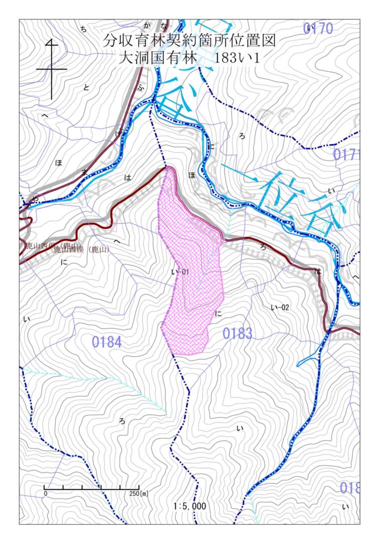 大洞国有林183い1林小班 初回公売:平成28年度