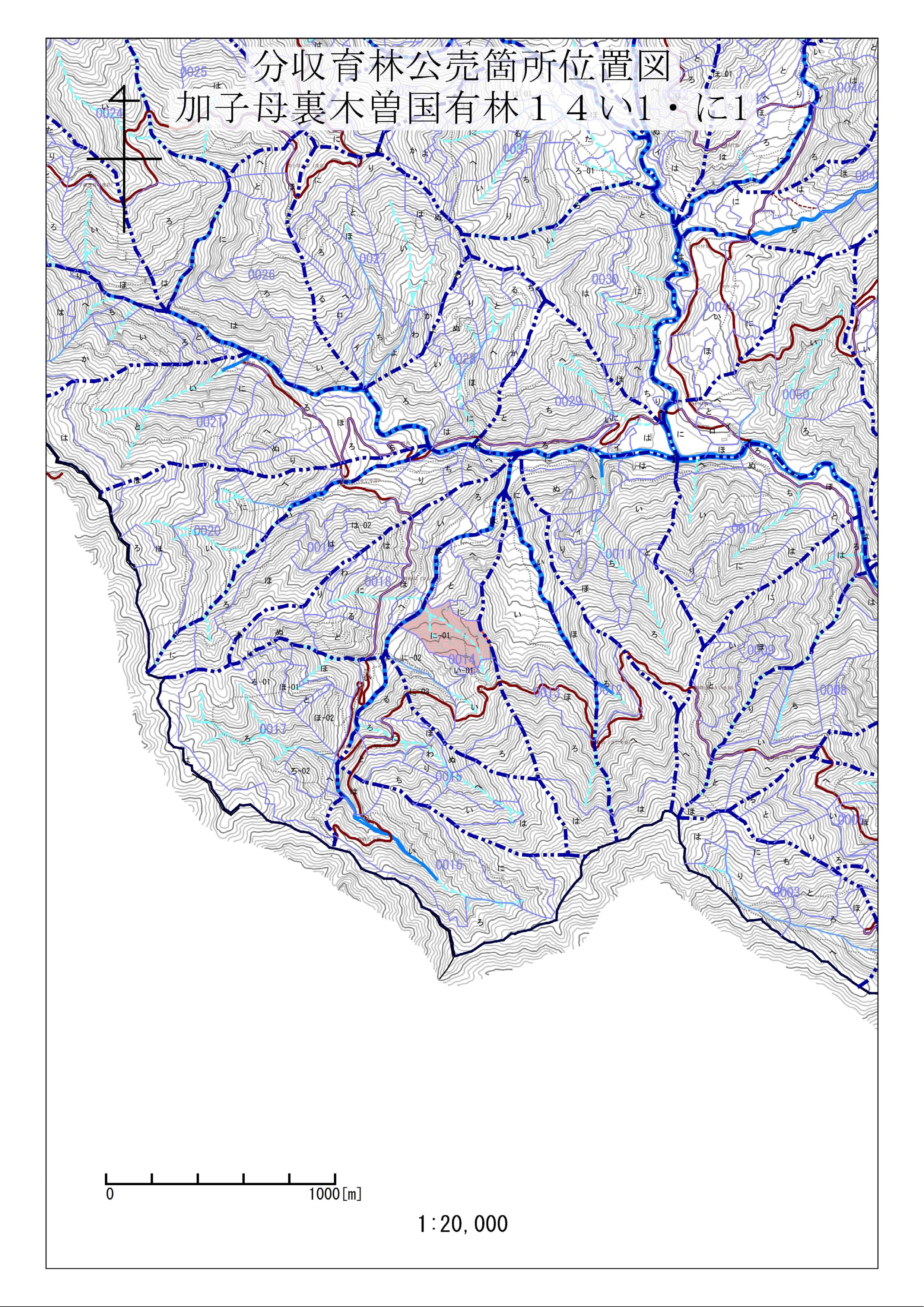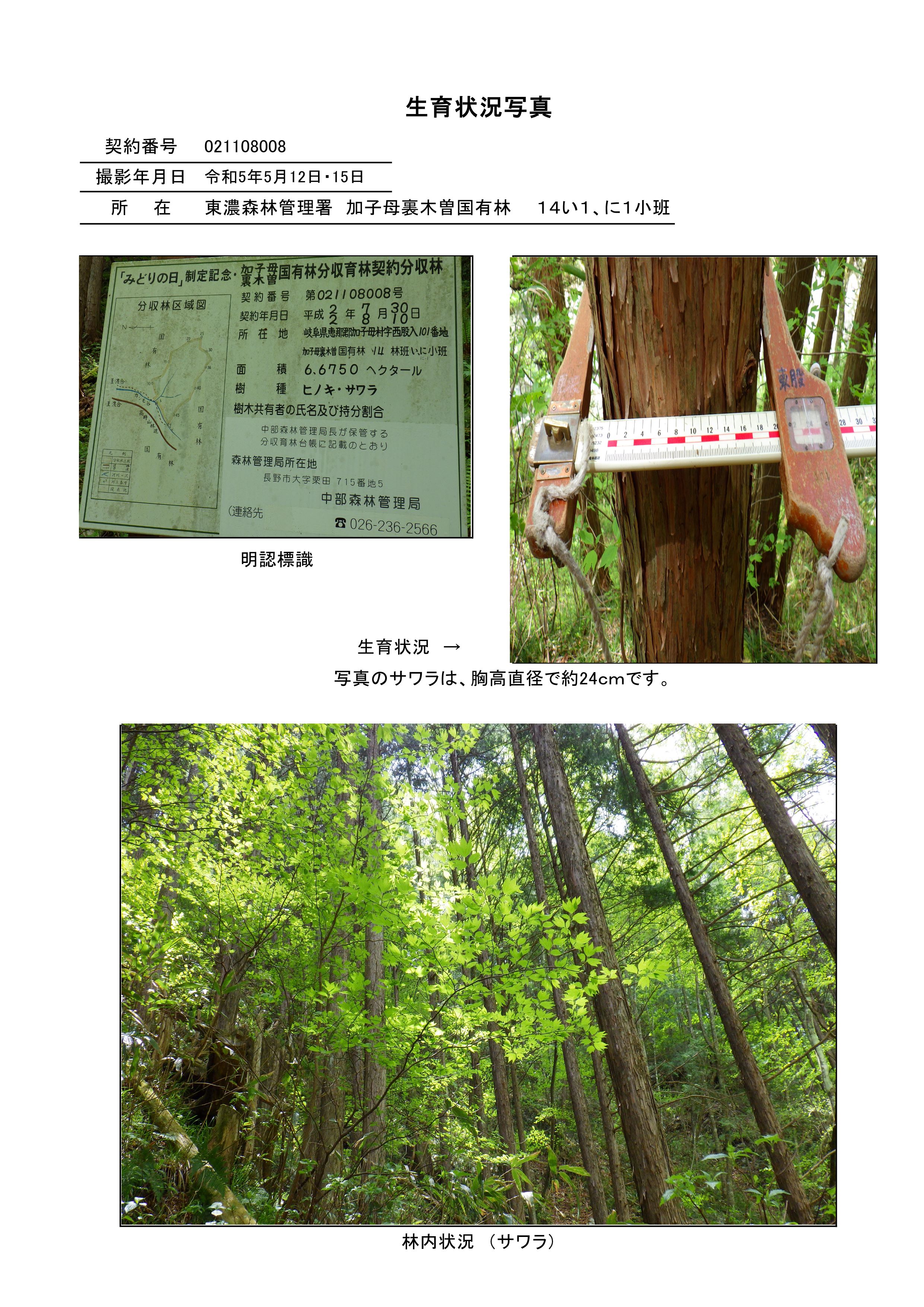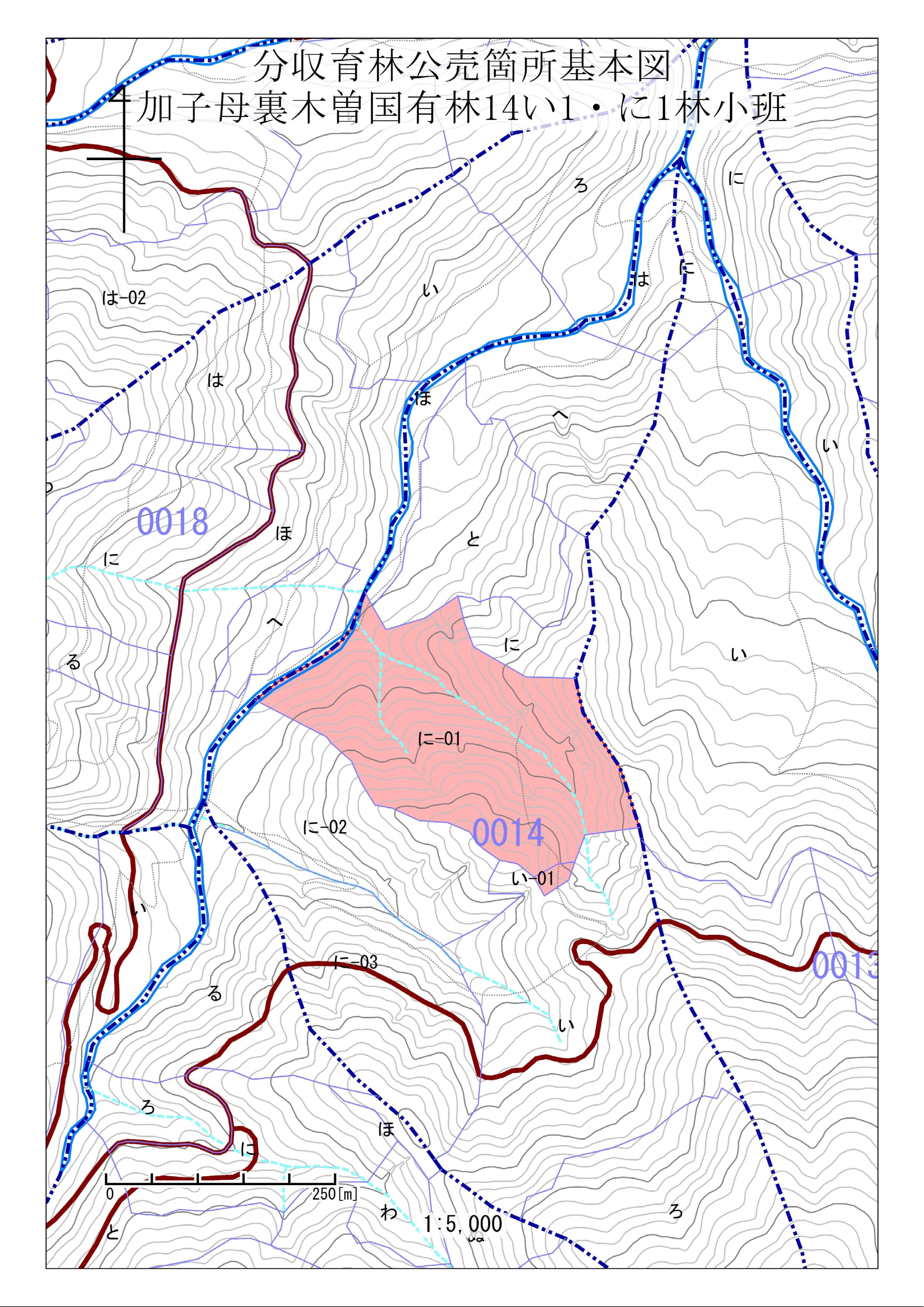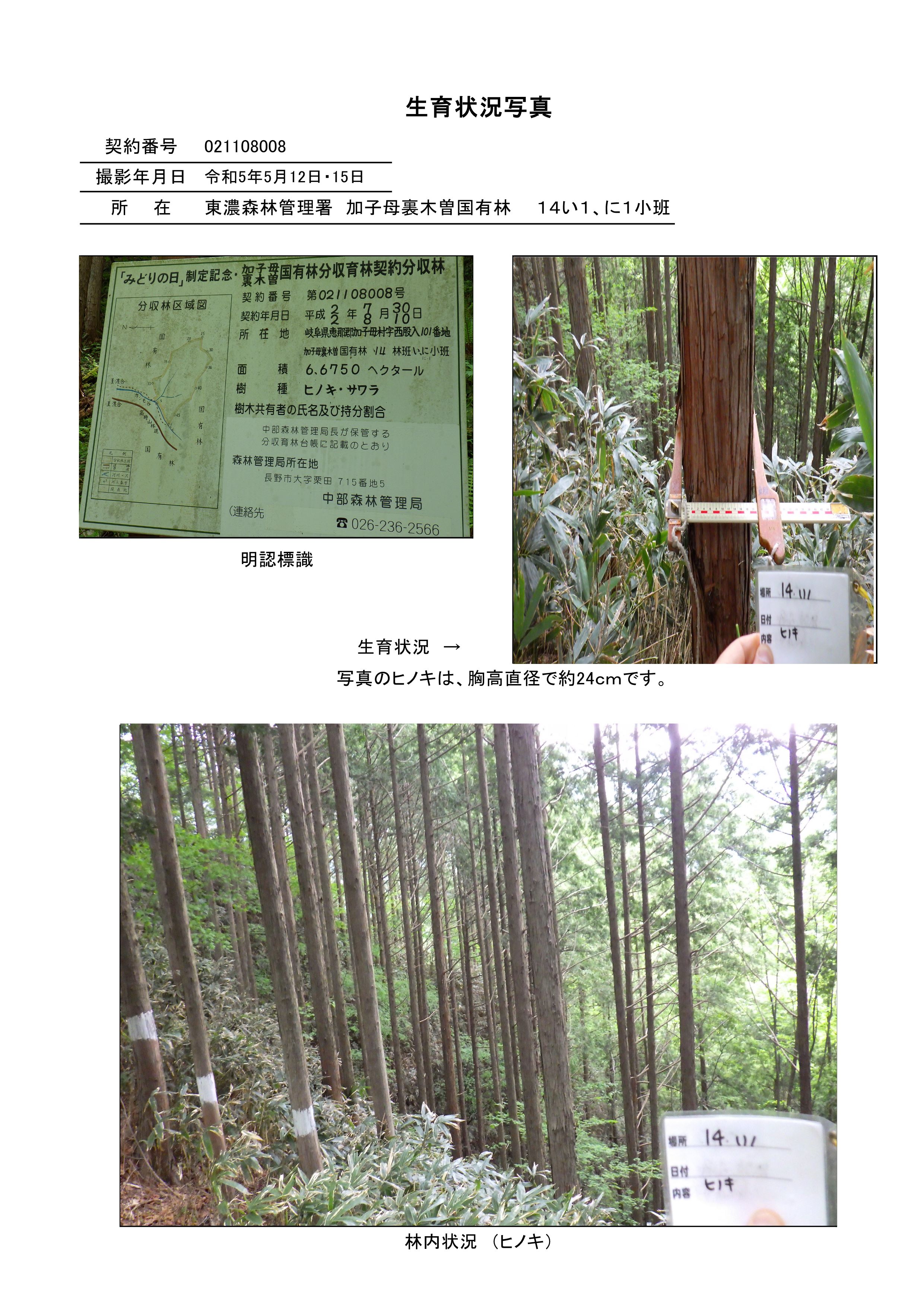 〇加子母裏木曽国有林14い1林小班林分の状況