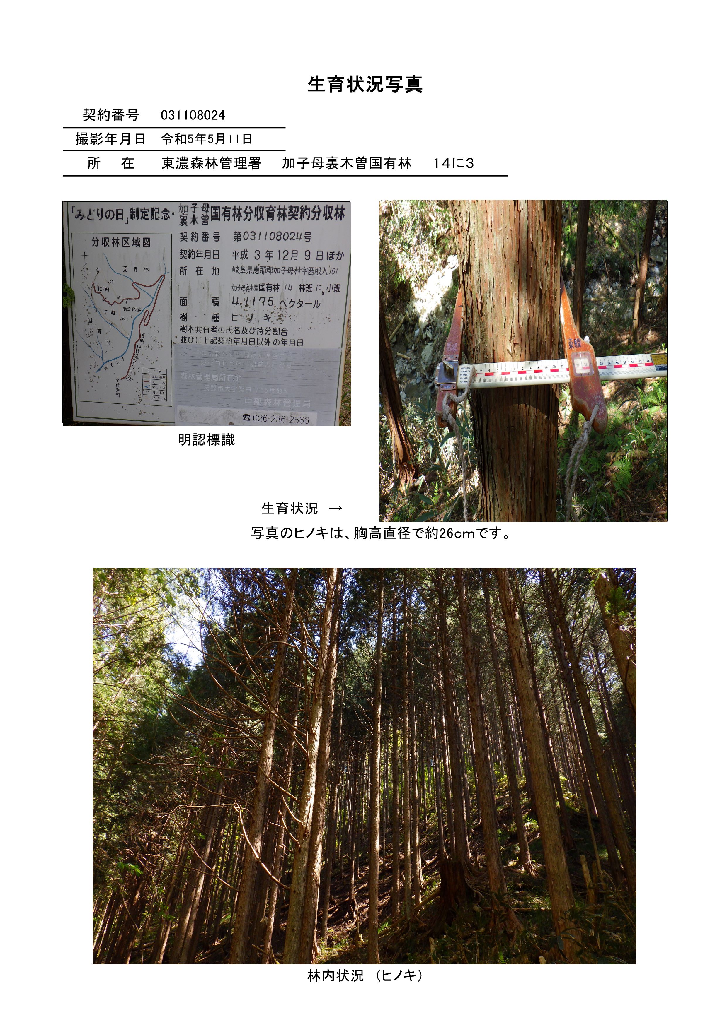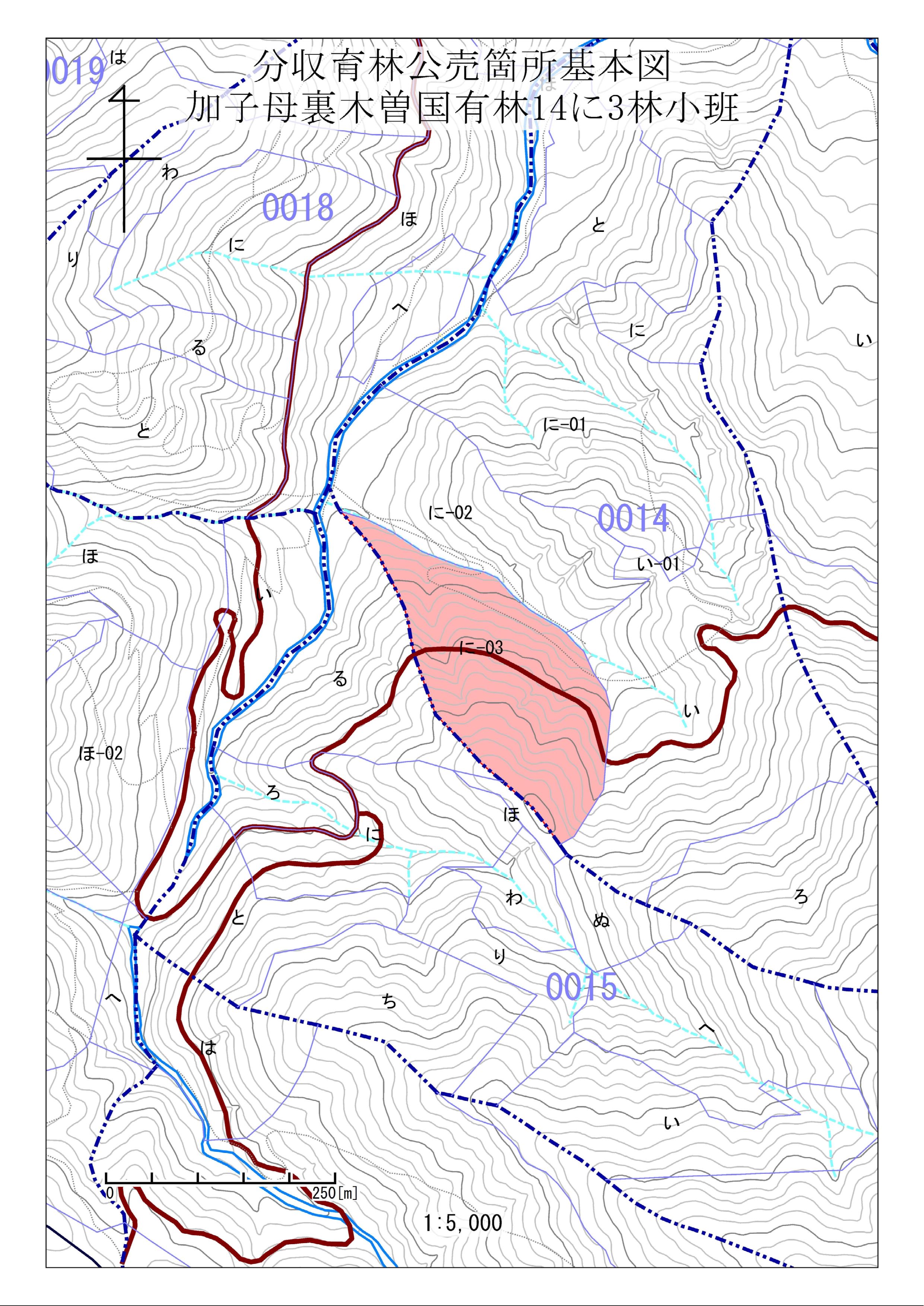 加子母裏木曽国有林14に3林小班 初回公売:令和6年度