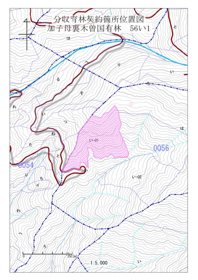 加子母裏木曽国有林56い1林小班 初回公売:令和2年度