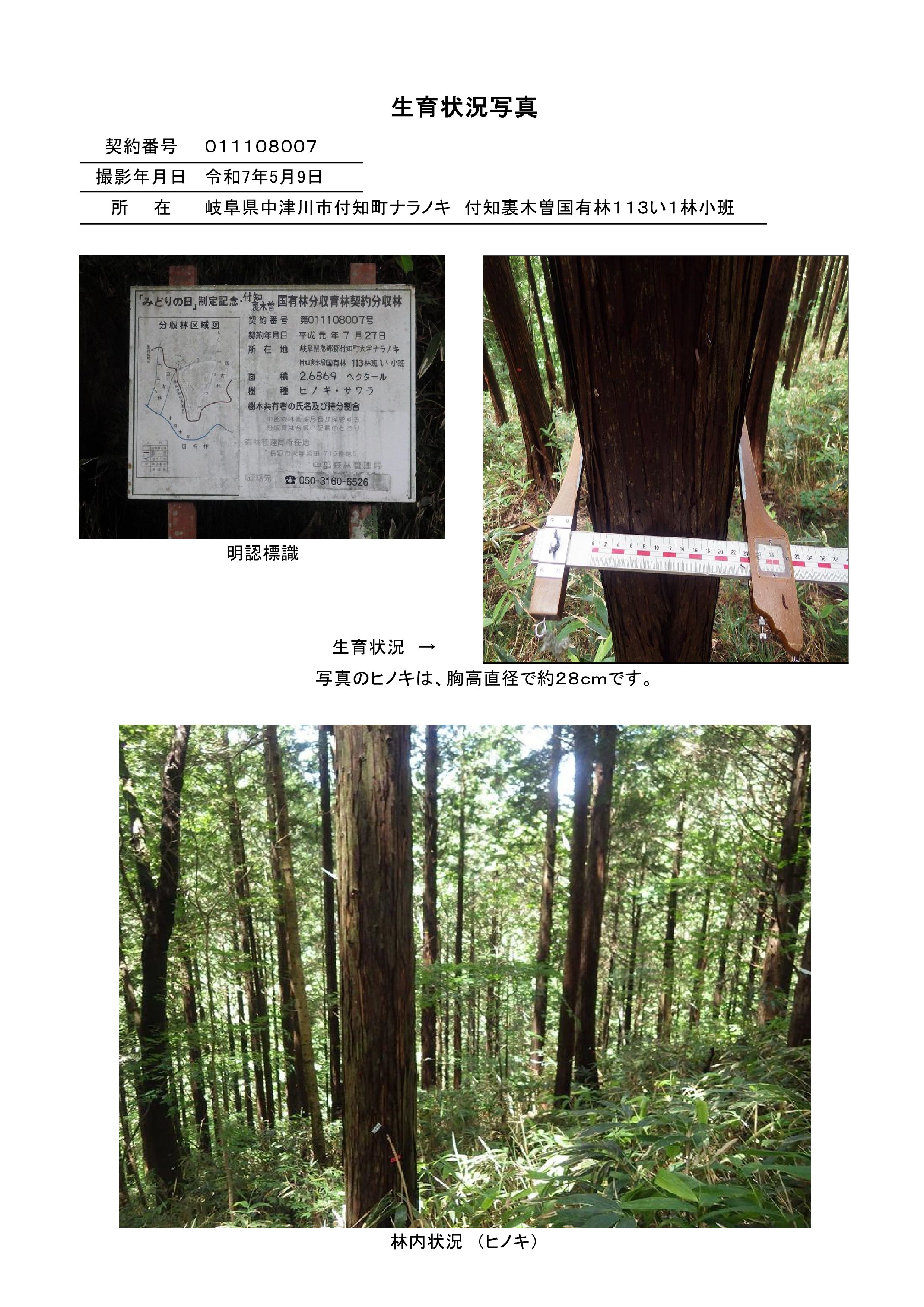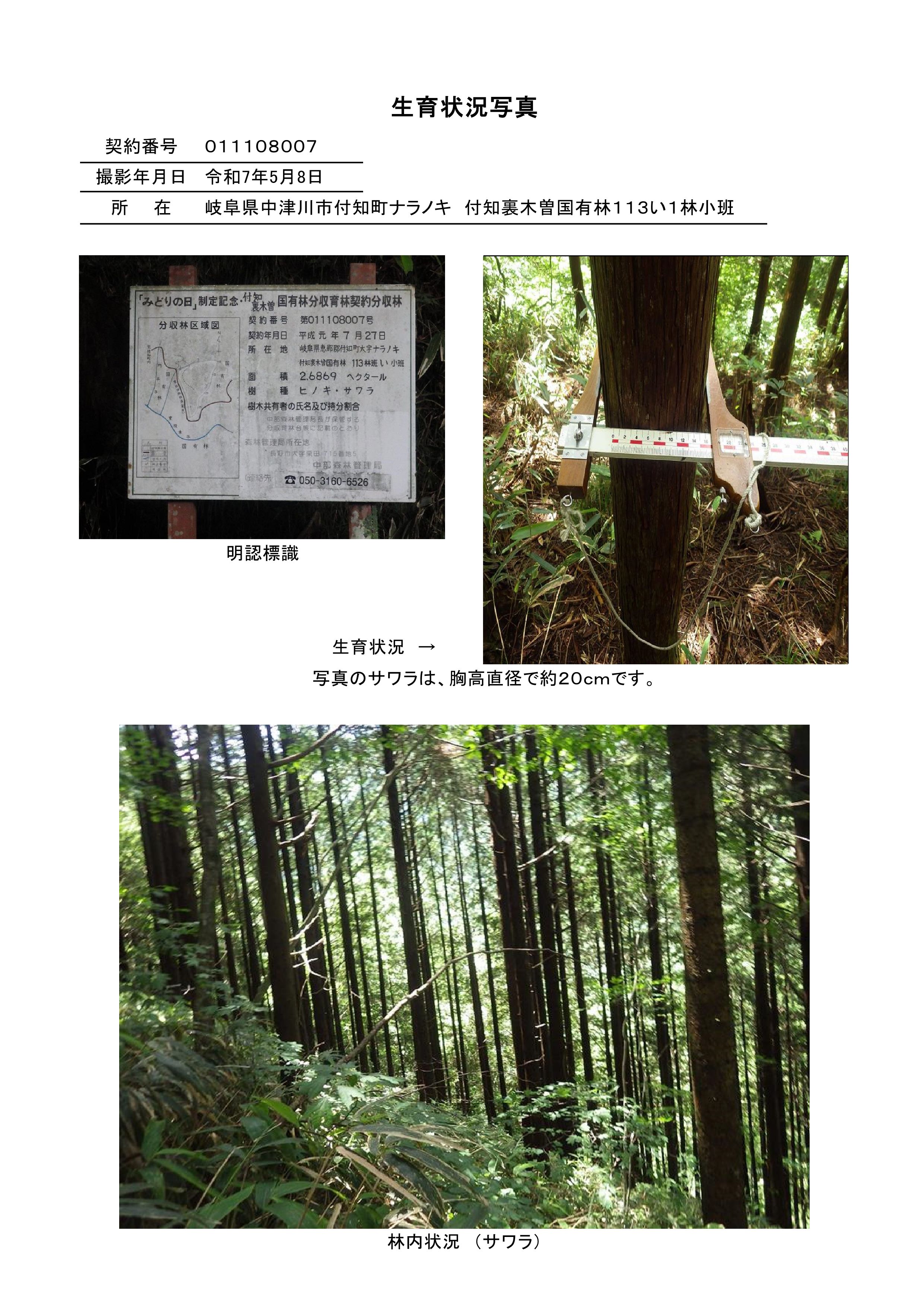 付知裏木曽国有林113い1林小班 初回公売:令和8年度