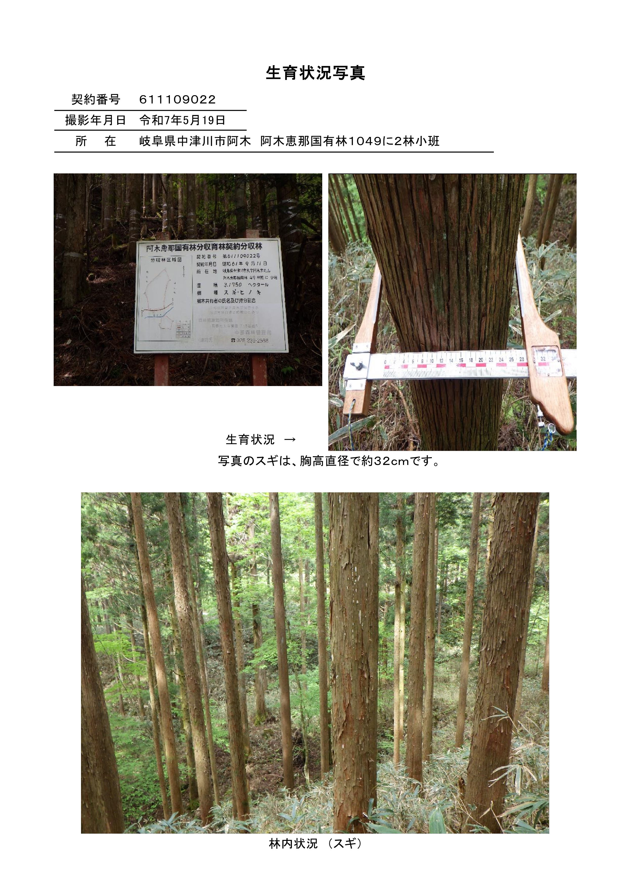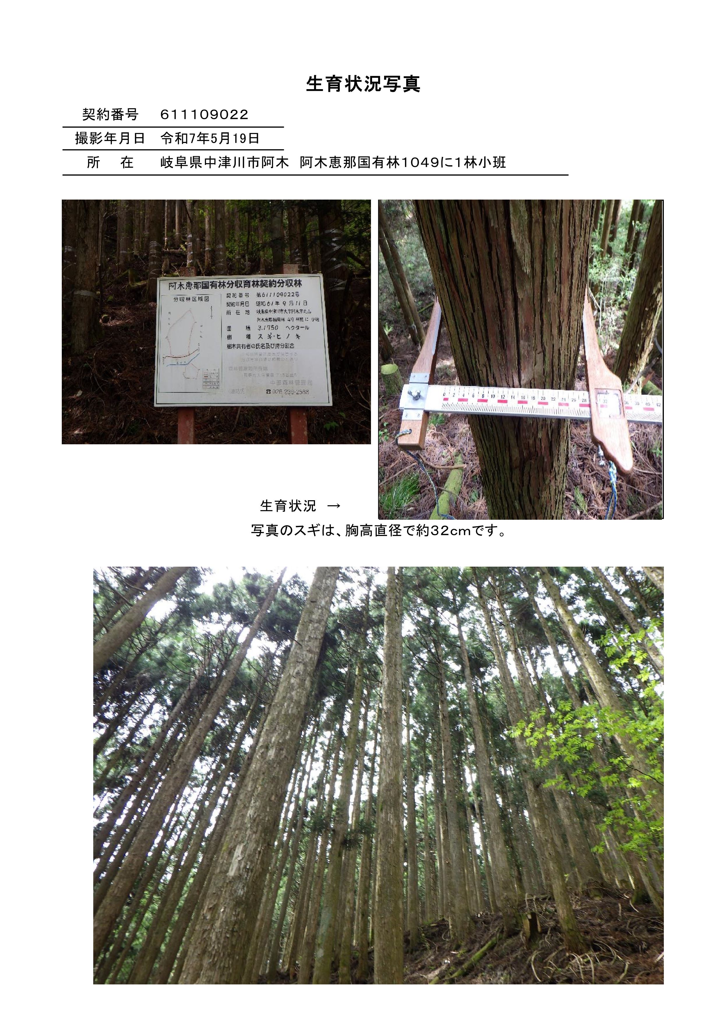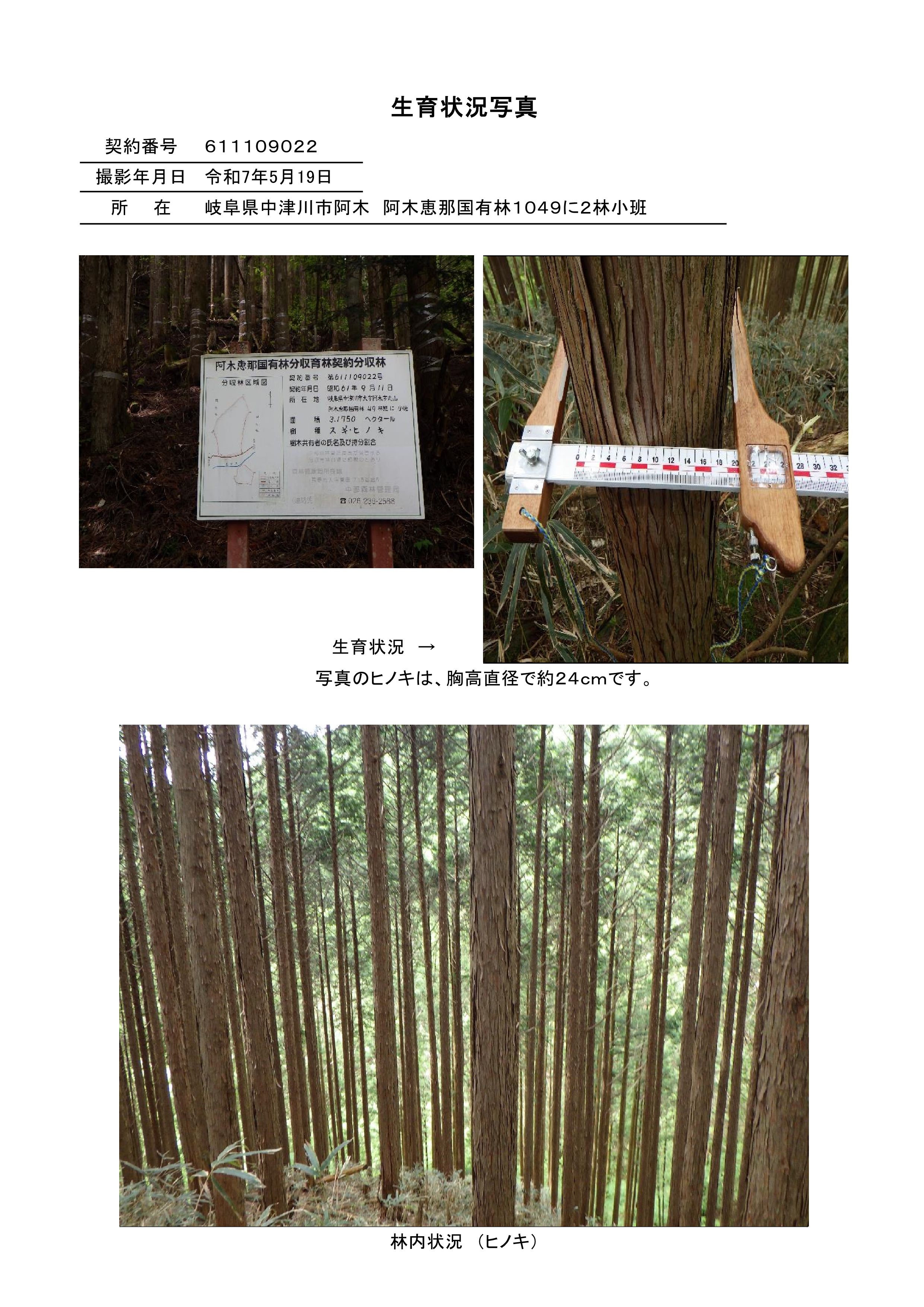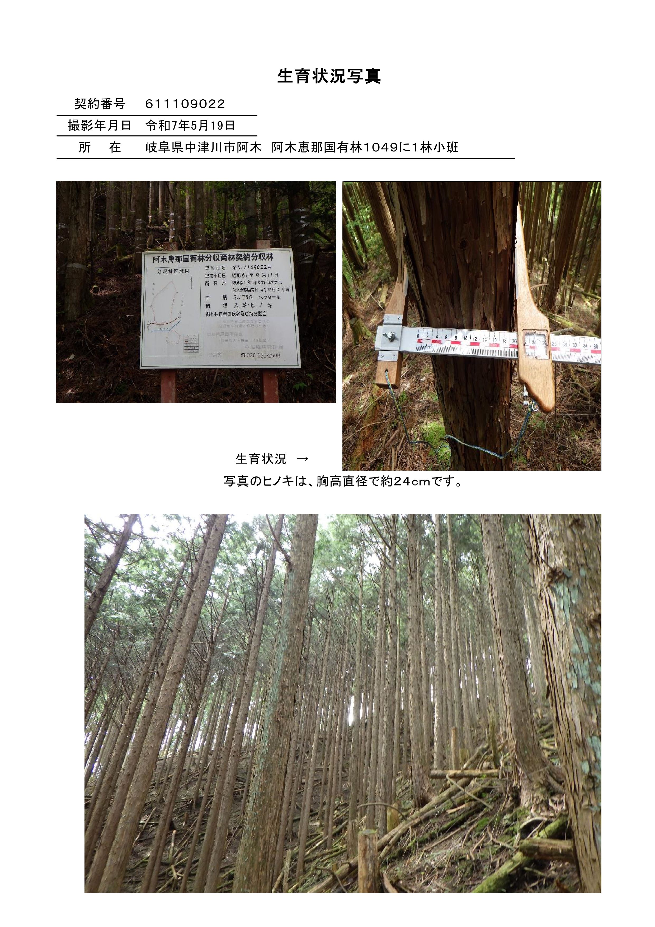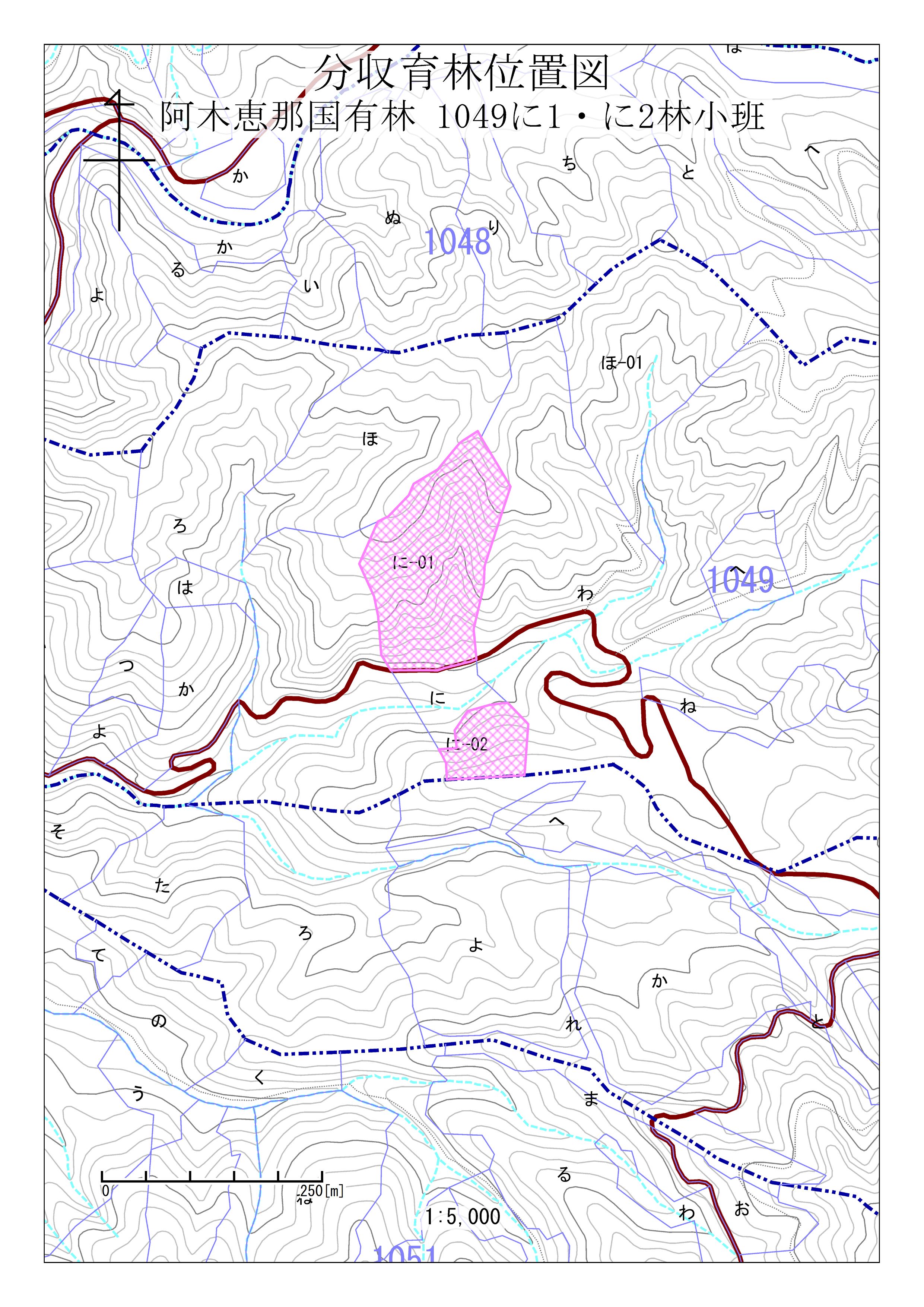 阿木恵那国有林1049に1、に2林小班 初回公売:令和8年度