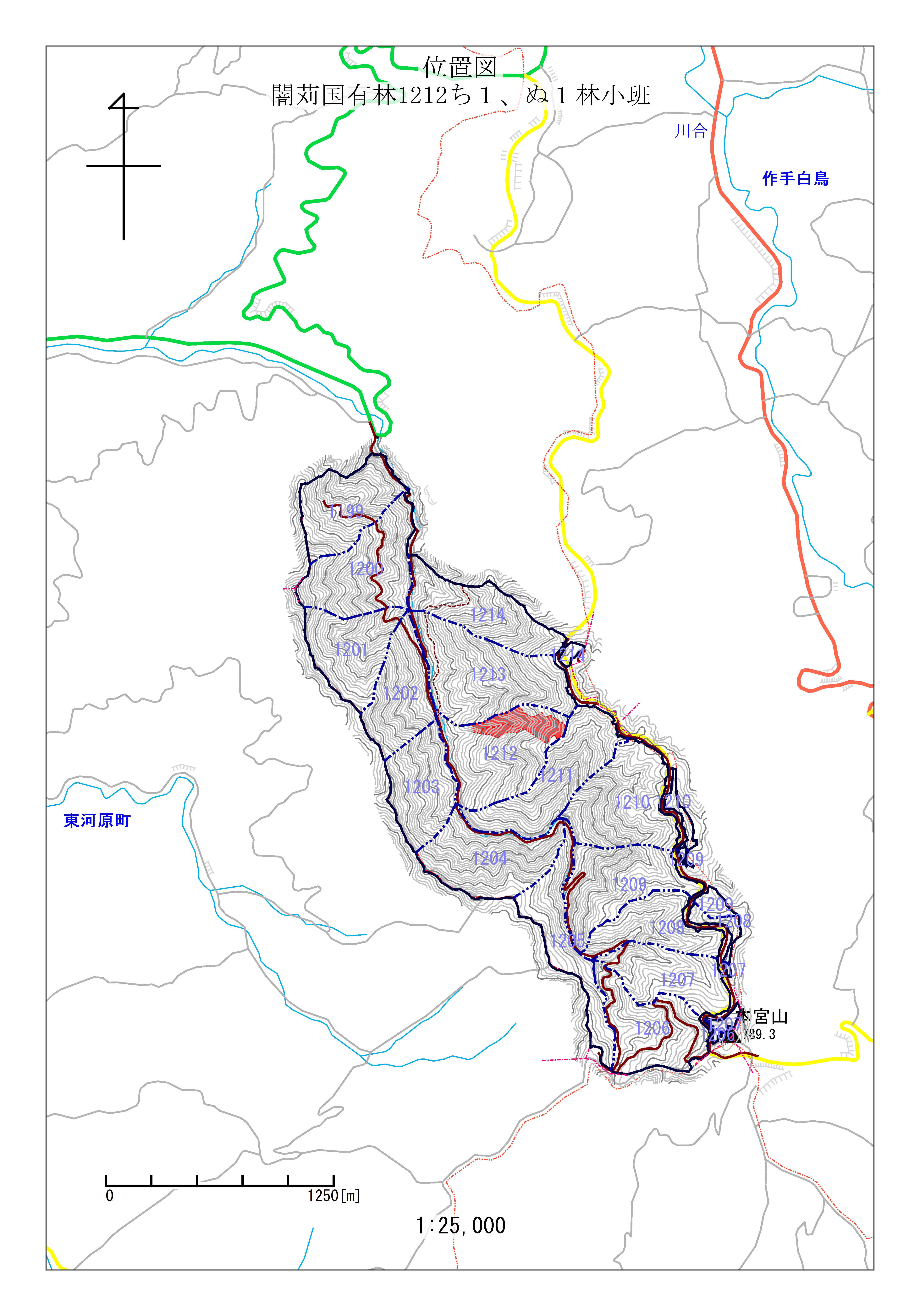 闇苅国有林1212ち1、ぬ1林小班 初回公売:令和2年度