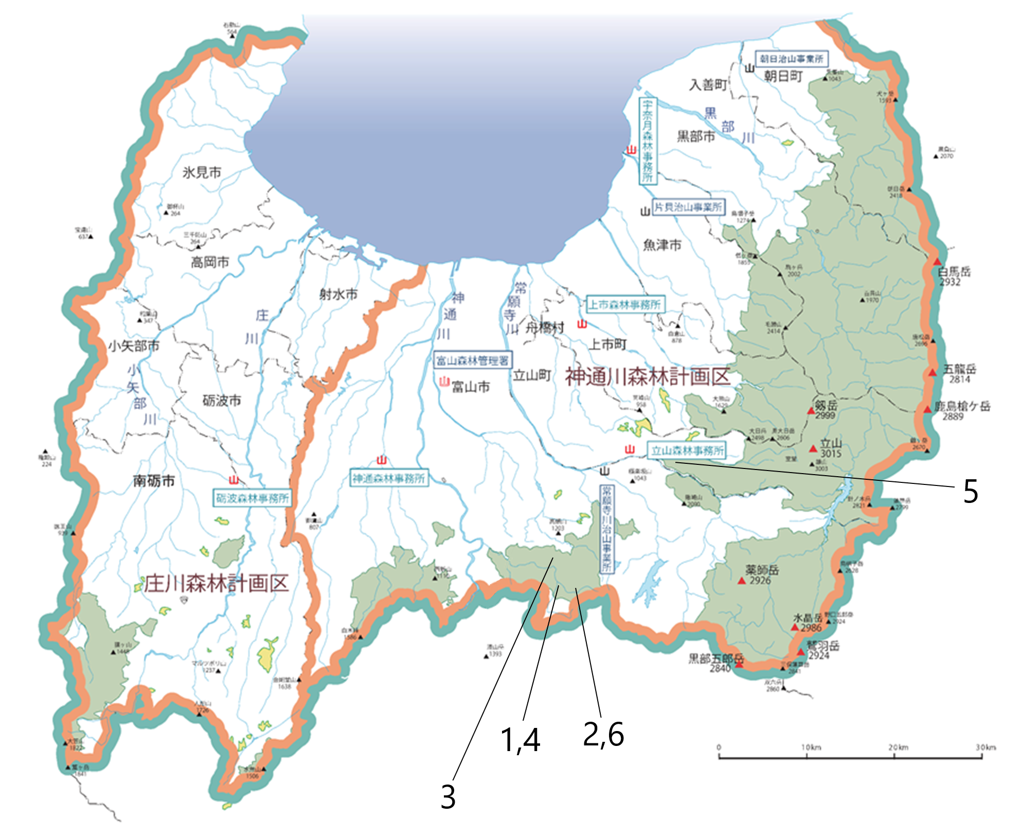 富山森林管理署管内図