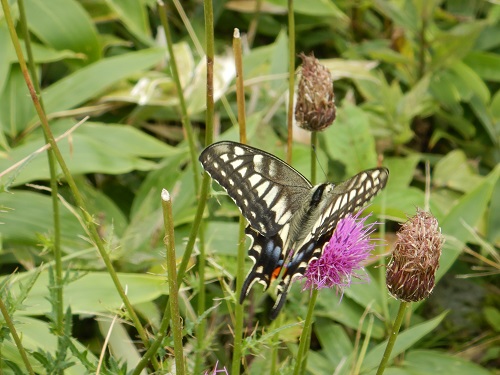 アサギマダラ(蝶)の幼虫はイケマを食べて毒を体内に貯えるので、 鳥に襲われないという説があります。 「イケマ」とは「太い根」というアイヌ語だそうです。