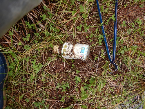 排泄物を埋める 焼山バス停近くにありました。紙ごと土をかぶせて処理しました。 携帯トイレの携行も考えてみて下さい。