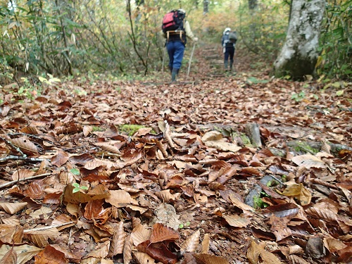 晩秋、落ち葉を踏みしめながら…パトロールの様子です。 天生でのパトロールも残す所あと数日となりました。