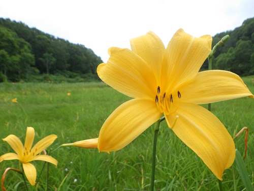 本日はカヤノ平自然休養林の北ドブ湿原を中心にパトロール。 夏らしい空模様ですが、やはりカヤノ平高原も汗ばむほどの暑さでした。 30名ほどの親子の団体の皆さんが、ブナの木陰の中を散策して楽しんでいました。 駐車場とキャンプエリア