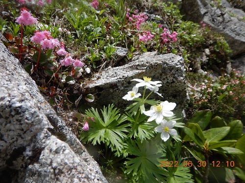 コイワカガミとハクサンイチゲ。