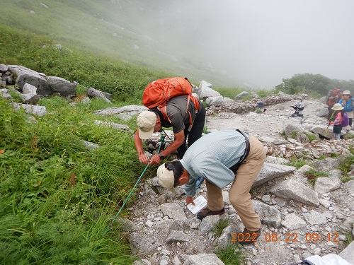 植生復元のための高山植物の種子採取。