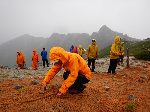 伊那前岳九合目にて植生復元作業をしました。