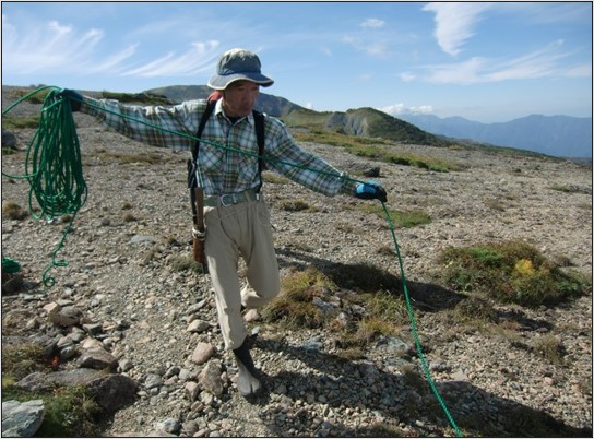 植生区域への踏み込み防止の為に設置したグリーンロープを撤収して翌年に備えます。