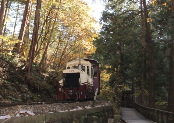 ![]() 赤沢自然休養林内に走る 森林鉄道 |