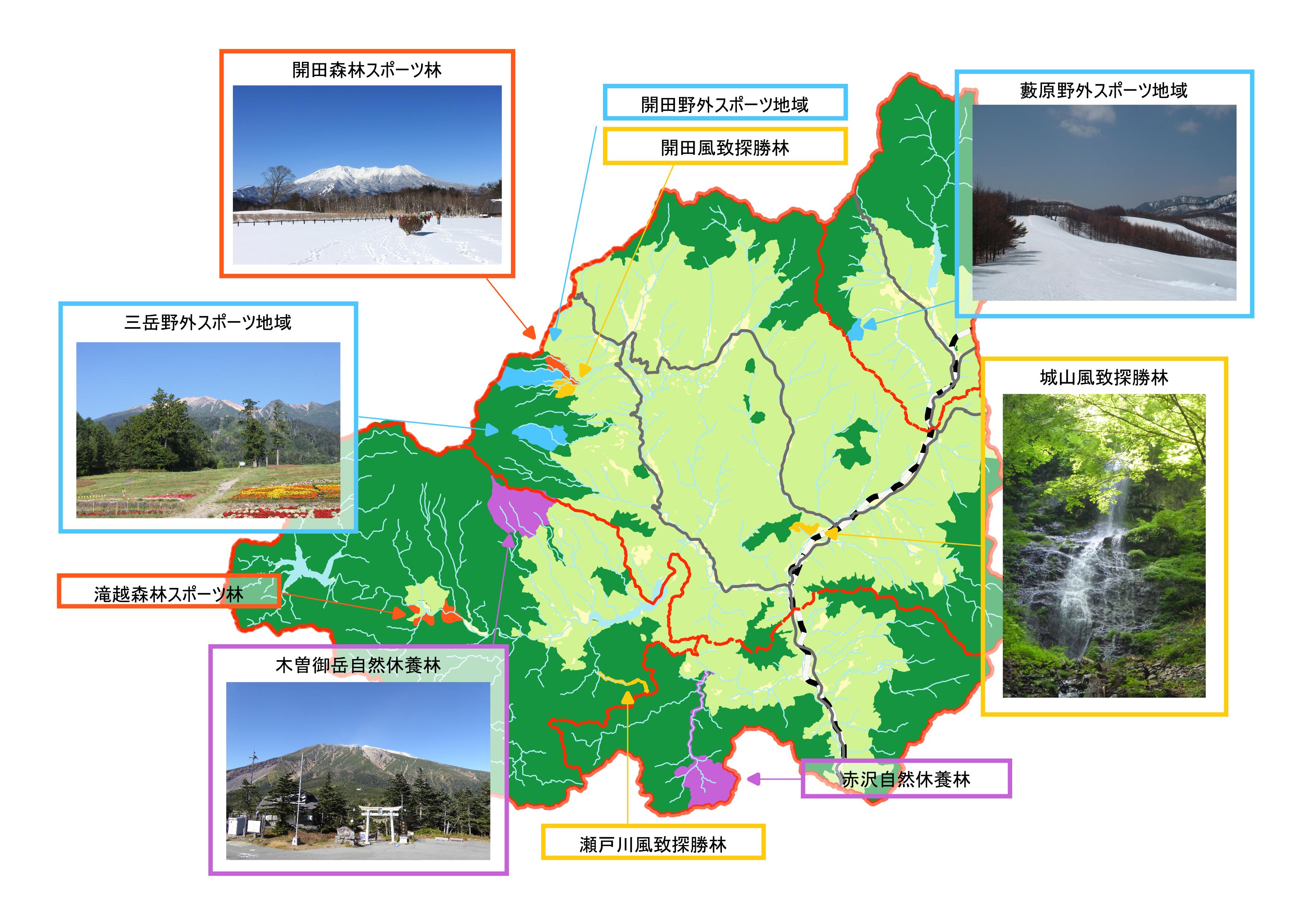 | 開田森林スポーツ林、野外スポーツ地域、風致探勝林 | 木曽町 | 307.67 |