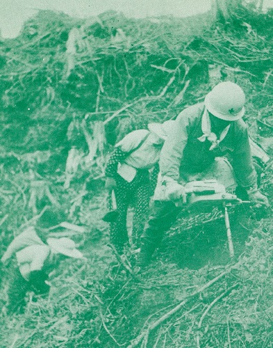 | 昭和30年頃の植付の様子 (現在の飛騨森林管理署、阿多粕国有林にて) |