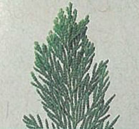 ネズコ(ヒノキ科) 葉裏の気孔群は明瞭ではありません。 樹皮は黒っぽく、材も五木の中で最も黒色です。 黒部渓谷に多く見られることから別名クロベと呼ばれます。 用途は、建具・器具・下駄・民芸品等。 |
