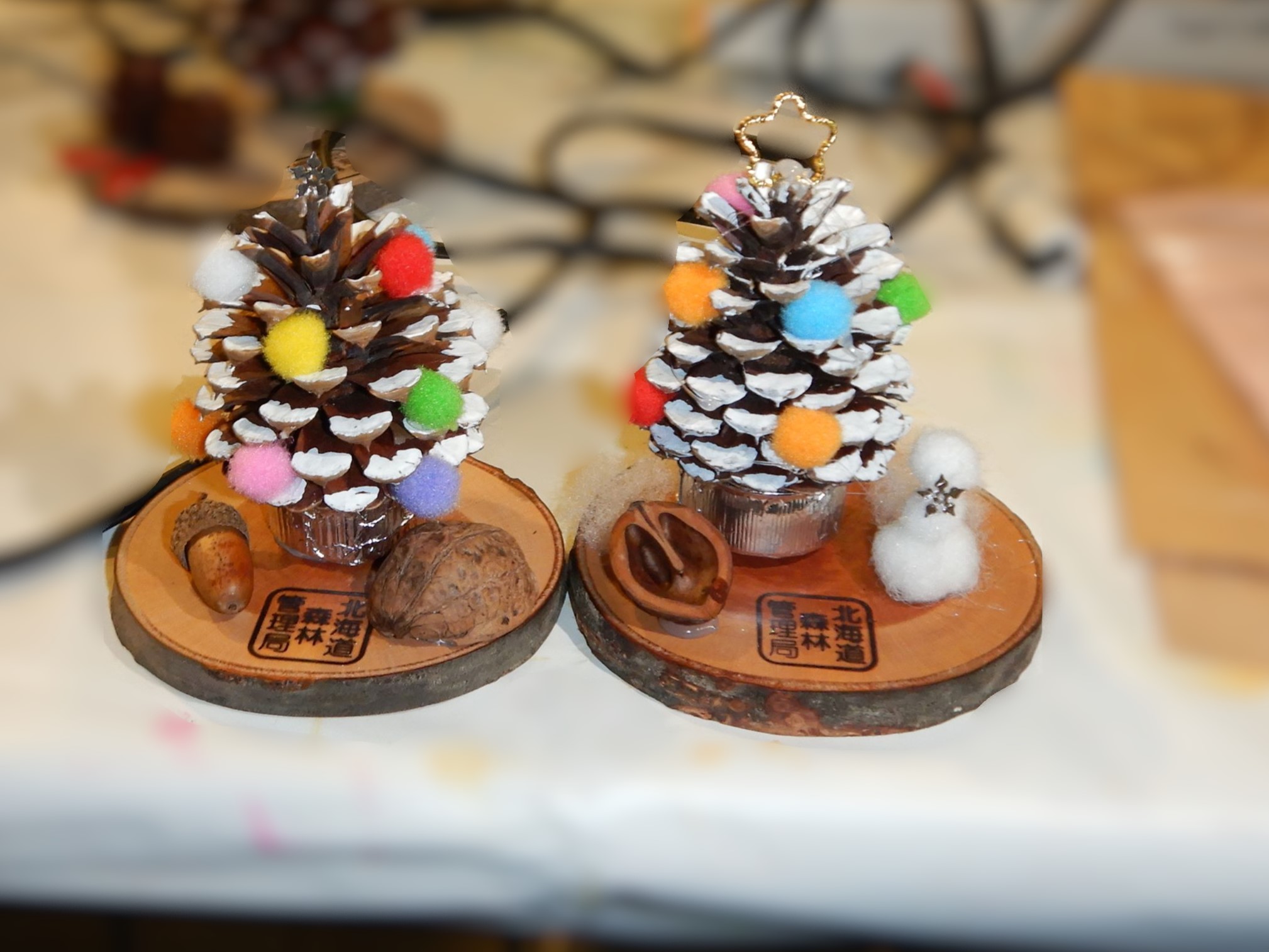 北海道森林管理局は13日に出展し、「松ぼっくりでクリスマスツリーづくり」を行いますので、是非お越しください。