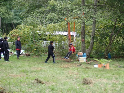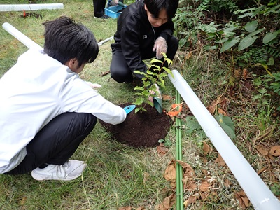 苗木植栽の様子 枯草コンポストでの堆肥づくりの様子