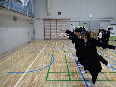 ![]() 紙で作ったタネの模型飛ばしの様子 |