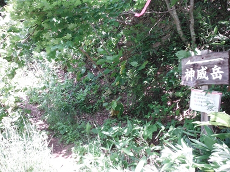 神威岳歩道入口(登山口)です。 頂上まで約3キロメートルの道のりです。