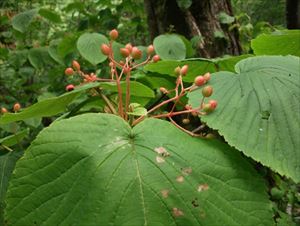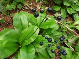 ウドには両性花と雄性花があり、上部に咲く両性花のみが黒紫の実を付けるそうです。