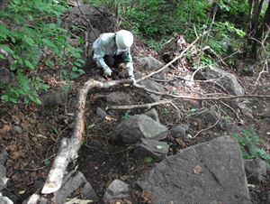 歩道脇にショートカットとなる踏み跡があったため、倒木等で封鎖しました。