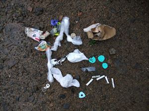 煙草の吸殻や、虫よけスプレーの破片等が多くみられます。