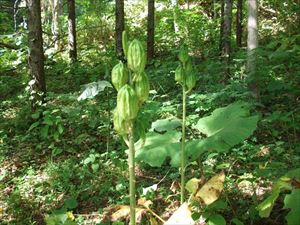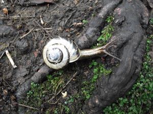 歩道を歩いていると、熟したサルナシ(コクワ)の実が落ちてきました。