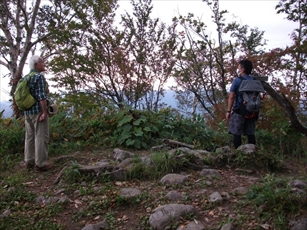 山頂からの眺望の様子、周囲の木々が色づき秋を感じさせます。