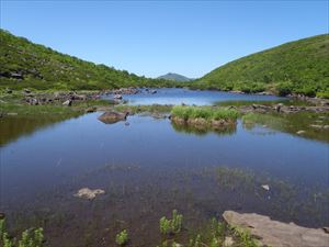 シャクナゲ沼 中央に見えるのは目国内岳。