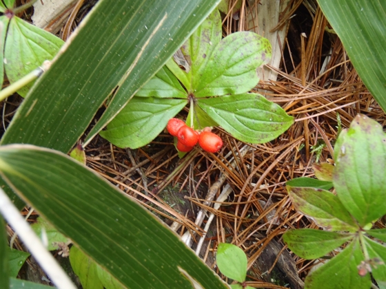 ハイマツ帯の中にはゴゼンタチバナの実がありました。見た目は固くおいしくなさそうです。