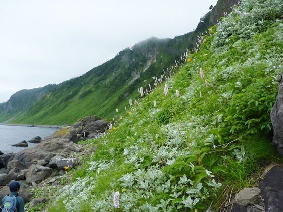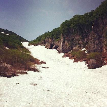 羅臼岳、羅臼側登山道の屏風岩付近は、まだ雪渓が残っています。