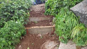 今回の補修作業に必要な木材4枚(1枚約12.8キログラム)、ペンキ缶(3キログラム)、鉄筋杭など、かなりの重量になりました。