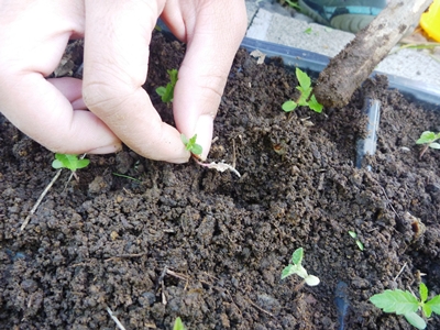 育苗ポットに移します。 ちゃんと根付くといいですね。