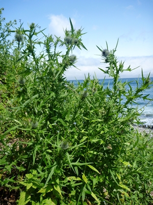 今回のアメリカオニアザミは砂利の斜面、番屋の裏、草地… いろんな場所に生えています。 日当たりの良いところでは太くなり蕾も数多く成長しています。