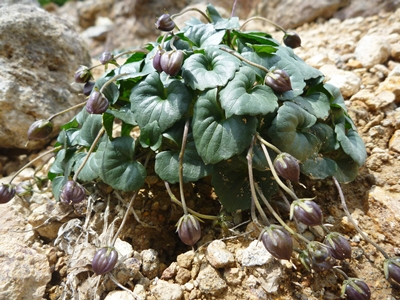 硫黄山近辺の砂れき地にさしかかるとシレトコスミレを多く見かけますが、 今あるのは花が終わり結実した株ばかり…