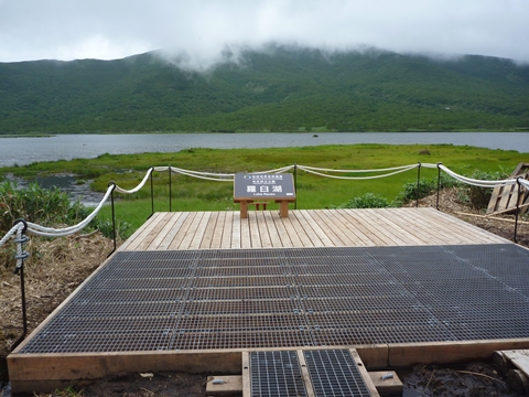 五の沼です。 木道の付け替え作業が終わり、とても歩きやすくなっていました。 五の沼の標識付近までは歩いて行けそうに見えますが、植生保護のため 木道から降りないようにお願いいたします。