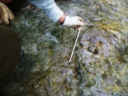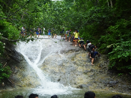 今日はこの時期に一番賑わっているだろうと思われるカムイワッカ湯の滝への巡視です。 流れる水温はちょっとぬるめの27度でした。