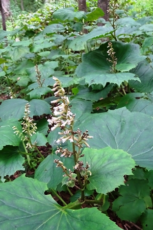 銀冷水の水は、いわゆる表流水として流れている沢の水です。 その年により涸れることもありますが、今年の夏は涸れることなく健在で、近くには 水辺を好む植物が生育しています。