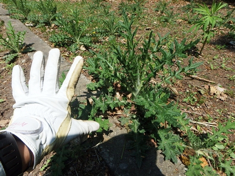 大きく育つ前に根こそぎスコップやツルハシを使い抜き取ります。