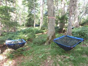 本日は、センターの職員に同行し、調査地の森の木から落ちてくるドングリをキャッチするためのシードトラップという網の設置作業を行いました。