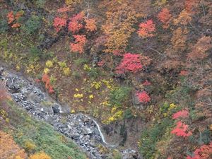 眼下に見えるカムイワッカ川の中の紅葉もとても綺麗でした。