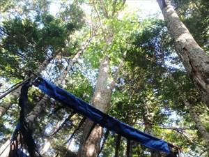 落下したドングリを受けるトラップの網が、複数箇所壊されていました。