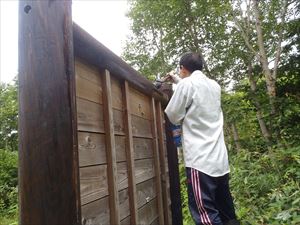 木製品施設は、毎年手入れをしないと劣化が激しくなるため、丁寧に作業を進めました。