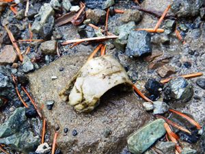 糞の中には、動物の骨のようなものが残っていました。
