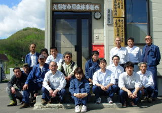 ![]() 丸瀬布合同森林事務所前で(中央) |